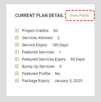 8. Package Expiry – This is the most important parameter to look at. It shows when the package will expire. Once package expired, you are no longer able to submit new service or bid on a project.